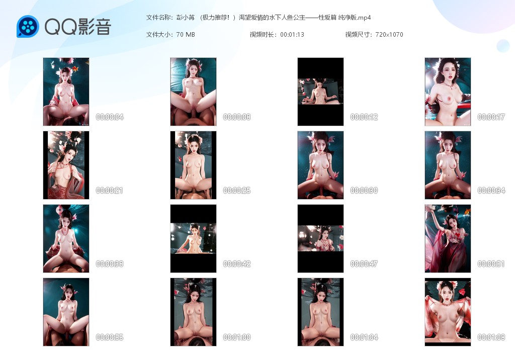 【影片名称】:【AI脱衣】❤️彭小苒❤️(极力推荐!)渴望爱情的水下人鱼公主——性爱篇 纯净版![118.75M/MP4/01:12/116]